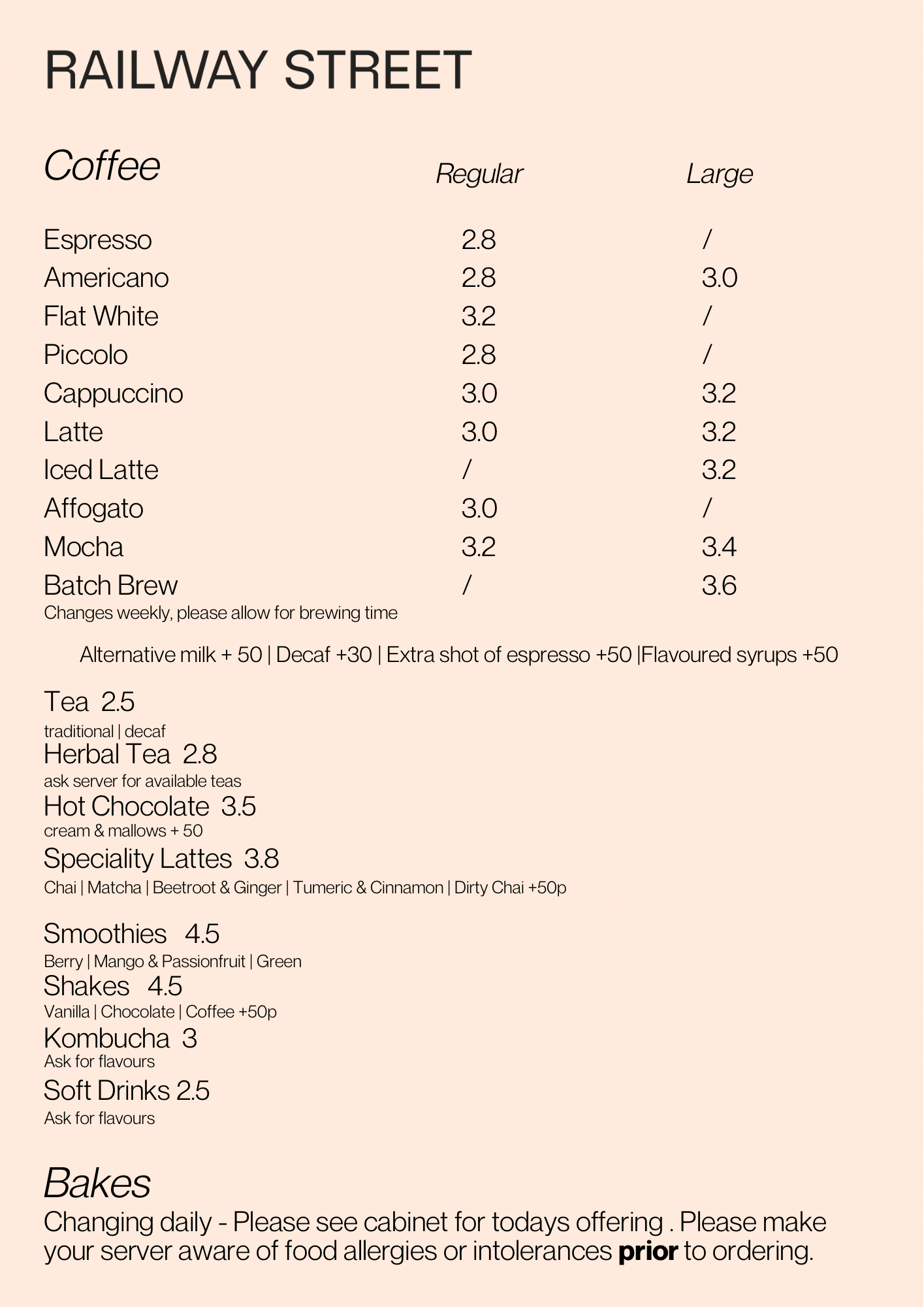We offer a wide range of delicious baked goods and a small brunch menu, complimented by our specialty coffee offering.